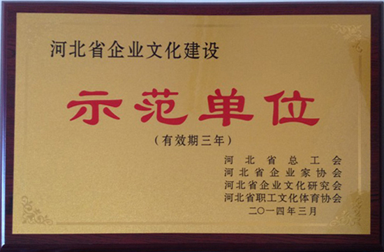 3月20日,河北省總工會、河北省企業(yè)家協(xié)會、河北省企業(yè)文化研究會、河北省職工文化體育協(xié)會聯(lián)合發(fā)布冀企協(xié)字【2014】15號文件,公布企業(yè)文化建設(shè)示范單位評選結(jié)果。其中,我公司被命名為河北省企業(yè)文化建設(shè)示范單位,董事長韓立君被命名為河北省企業(yè)文化建設(shè)先進個人。