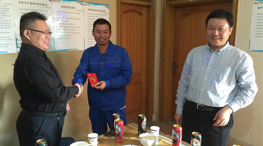 李總一行先后來到各個(gè)項(xiàng)目部,并與項(xiàng)目部全體員工一起聯(lián)歡座談。李總非常關(guān)心員工的生活情況,親切詢問大家過年期間的吃、穿、住、行等生活細(xì)節(jié),對(duì)過年期間項(xiàng)目部舉辦的各項(xiàng)活動(dòng)表示稱贊。為表示慰問,李總還代表總公司給各個(gè)項(xiàng)目分別頒發(fā)了紅包,祝福每一名員工在新的一年身體健康,闔家歡樂,日子過得紅紅火火。