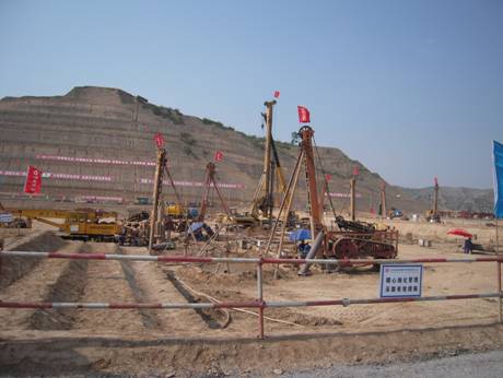 本工程我公司共完成φ1000mm和φ800mm共計(jì)1735根旋挖鉆孔灌注樁和沖擊鉆孔灌注樁,樁端持力層為砂巖,樁身為C30混凝土,19961立方米混凝土。