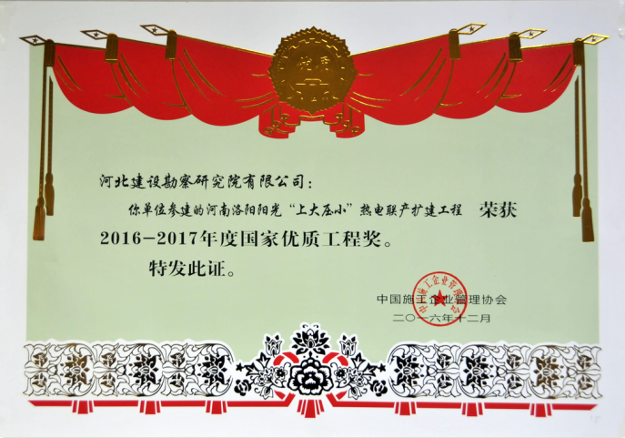 近日,由中國施工企業(yè)管理協(xié)會組織的2016-2017年度第一批國家優(yōu)質(zhì)工程獎評審會在北京隆重召開。國家工程建設(shè)質(zhì)量獎評審組聽取了2016-2017年度第一批國家優(yōu)質(zhì)工程獎評審工作報告和專家組長對參評項目復(fù)查情況的匯報,對參評項目進行了綜合評議、質(zhì)詢答辯和記名投票,確定了2016-2017年度第一批國家優(yōu)質(zhì)工程獎候選項目。我公司參建的新疆華電喀什熱電有限責任公司的2X350MW熱電聯(lián)產(chǎn)工程、河南洛陽陽光“上大壓小”熱電聯(lián)產(chǎn)熱電工程最終通過評審榮獲了國家優(yōu)質(zhì)工程獎。