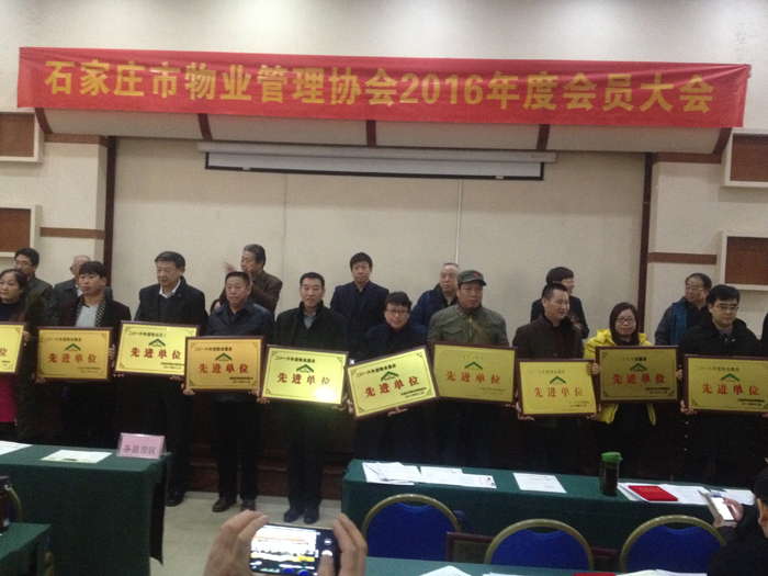 2016年12月28-29日,石家莊市物業(yè)管理協(xié)會2016年度會員大會在西柏坡明苑酒店召開,市住建局、市物業(yè)協(xié)會有關領導和各會員單位代表500余人參會。會上,對一年來為行業(yè)發(fā)展做出突出貢獻的先進單位、先進個人進行了表彰通報。我物業(yè)服務公司榮獲“石家莊市物業(yè)服務先進單位”,張運凱經(jīng)理榮獲“物業(yè)服務先進工作者” 榮譽稱號。我物業(yè)公司將以此為契機,繼續(xù)推進服務創(chuàng)優(yōu),加強物業(yè)管理,持續(xù)提高物業(yè)服務水平,為廣大業(yè)主提供更好的物業(yè)服務。