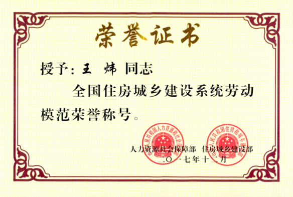 為進一步激勵全國住房城鄉(xiāng)建設(shè)系統(tǒng)廣大干部職工的積極性和創(chuàng)造性,努力推動住房城鄉(xiāng)建設(shè)工作上新臺階,人力資源社會保障部、住房城鄉(xiāng)建設(shè)部在全國住房城鄉(xiāng)建設(shè)系統(tǒng)內(nèi),開展了先進集體和先進個人的評選活動。通過逐級推薦,由人力資源社會保障部和住房城鄉(xiāng)建設(shè)部最終審定,決定對197個先進集體,381名先進工作者,414名勞動模范進行表彰。我公司工會主席王煒同志榮獲全國住房城鄉(xiāng)建設(shè)系統(tǒng)勞動模范榮譽稱號?!?/span>
