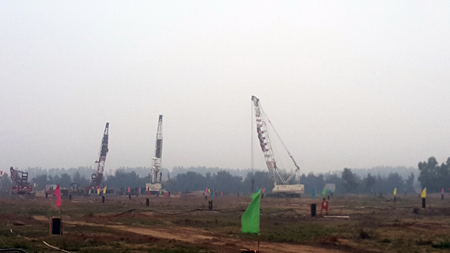 受業(yè)主委托,我單位分別承擔(dān)了2#區(qū)Ⅵ標(biāo)段、3#區(qū)Ⅰ-1標(biāo)段地基預(yù)處理工程及全場(chǎng)區(qū)試樁工程。地基預(yù)處理工程工作內(nèi)容為降水加強(qiáng)夯,降水井共完成634口,強(qiáng)夯施工完成約43.7萬(wàn)㎡。試樁工程共完成8個(gè)試樁區(qū),試樁樁型包括預(yù)應(yīng)力高強(qiáng)混凝土管樁、機(jī)械連接先張法預(yù)應(yīng)力竹節(jié)樁、預(yù)制方樁、灌注樁等。