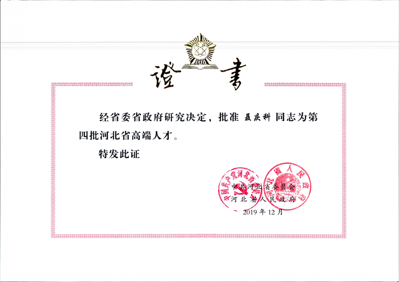 經(jīng)公司申報(bào)、中共石家莊市委組織部推薦,中共河北省委、省政府批準(zhǔn),公司總工程師聶慶科列入河北省高端人才第四批支持計(jì)劃名單,支持期限為2019年12月至2024年11月,每年將獲得30萬(wàn)元的專(zhuān)項(xiàng)資金支持。