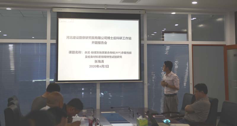 2020年6月2日下午,公司博士后工作站舉辦博士后研究人員張海清的開題報(bào)告會。由博士后工作站站長聶慶科正高級工程師、河北省建筑科學(xué)研究院副院長王維玉正高級工程師、北京交通大學(xué)白冰教授、河北科技大學(xué)張亞通教授、河北省生態(tài)環(huán)境廳謝劍鋒正高級工程師組成專家組,對張海清博士研究的《赤泥-粉煤灰地質(zhì)聚合物樁(RFP)承載性能及樁身材料宏微觀特性試驗(yàn)研究》開題報(bào)告進(jìn)行了評審,公司總經(jīng)理李華偉、省人力資源和社會保障廳、市人力資源和社會保障局有關(guān)領(lǐng)導(dǎo)參加了報(bào)告會。