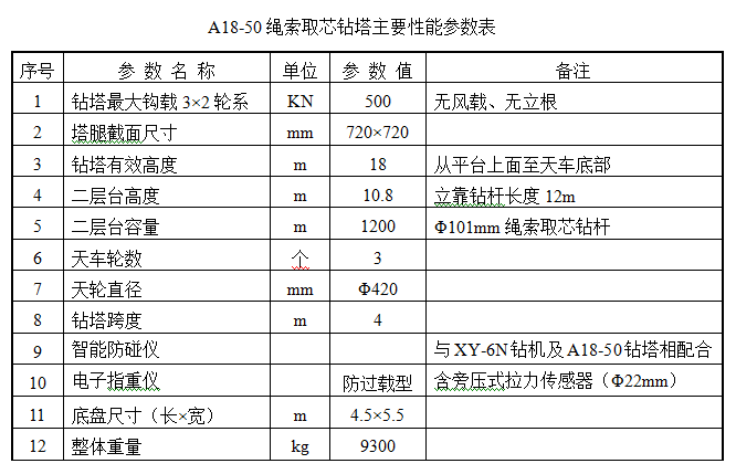 1、A18-50繩索取芯鉆塔設計、制造依據“先進、可靠、安全、經濟、實用”的原則,可滿足繩索取芯鉆井工藝要求,符合施工現(xiàn)場HSE規(guī)范。