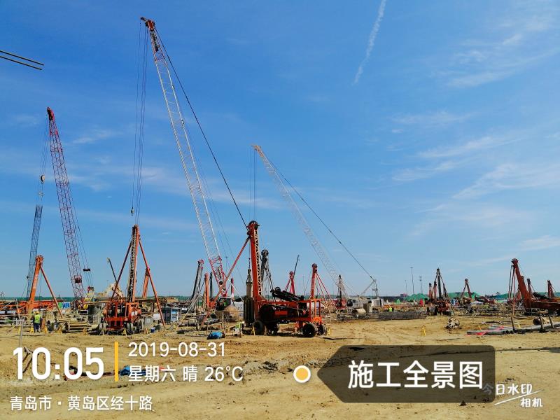 本工程投入管理人員、施工人員350余人、施工設(shè)備為沖擊鉆機(jī)54臺(tái),旋挖鉆機(jī)2臺(tái),鏟車(chē)3臺(tái),挖掘機(jī)8臺(tái),拉漿車(chē)2臺(tái),50T履帶式吊車(chē)3臺(tái),70T履帶式吊車(chē)3臺(tái),25T履帶式吊車(chē)3臺(tái)。自2019年8月21日開(kāi)工至2019年12月16日完工;工期總計(jì)116日歷天。共完成樁基1218根。實(shí)際完成工作量35478.2m。