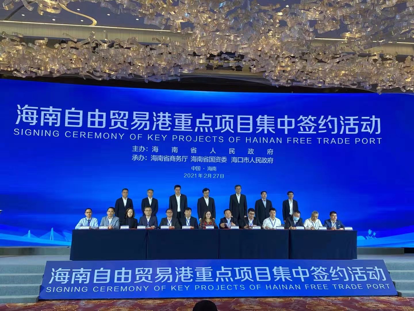 2021年2月27日下午,海南自由貿(mào)易港2021年(第一批)重點(diǎn)項(xiàng)目集中簽約儀式在海口市海南迎賓館舉行。受公司領(lǐng)導(dǎo)委托,張樹臣同志代表我公司出席簽約儀式,并順利與??谑薪瓥|新區(qū)成功簽約。