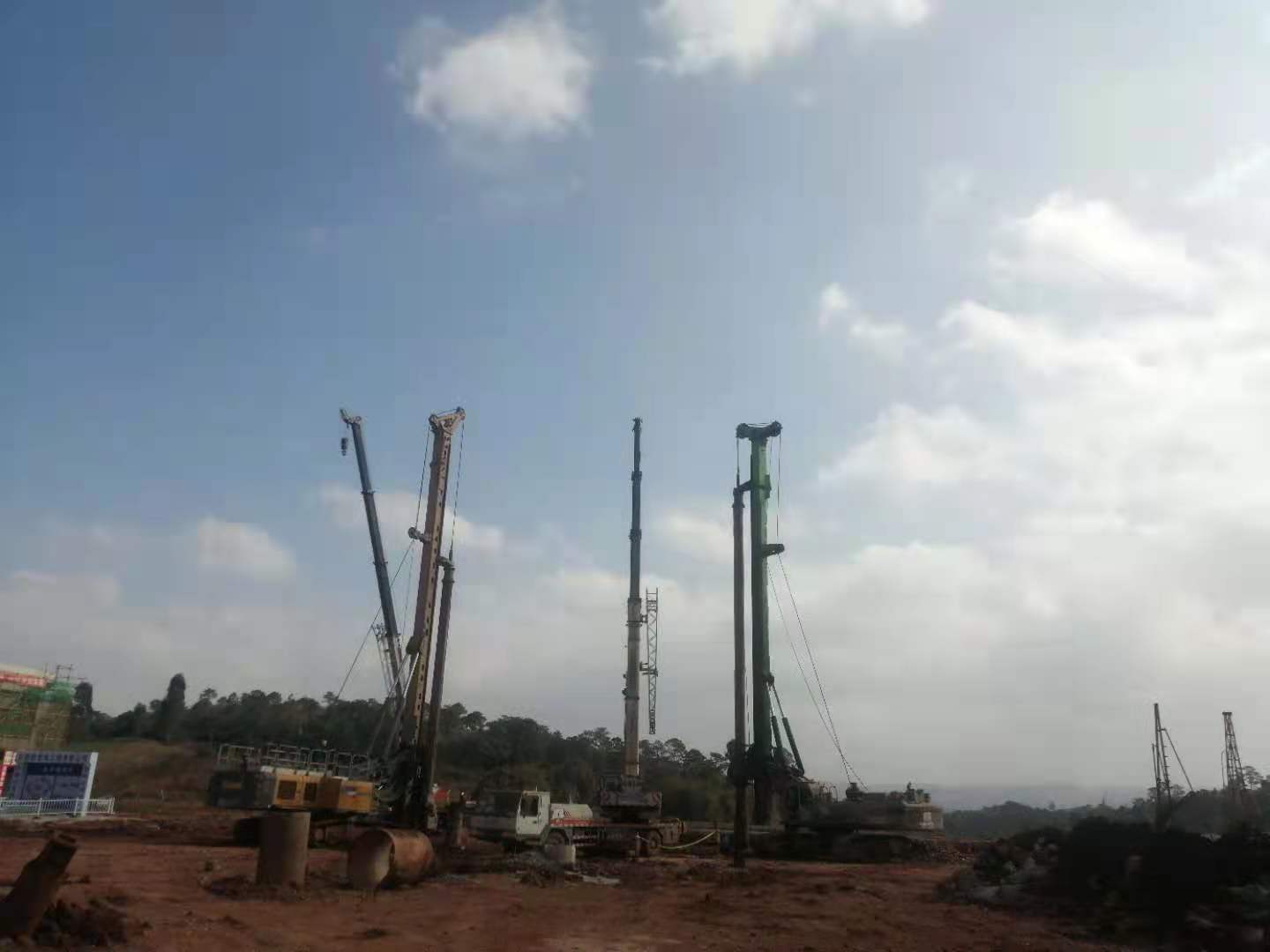 本工程于2020年09月28日開工,至2021年2月3日完工,歷時(shí)129天,保質(zhì)、保量、安全完成全部施工任務(wù)。在施工過程中,根據(jù)勘察報(bào)告及超前鉆報(bào)告,樁基施工存在較多溶洞;同時(shí)根據(jù)施工圖紙要求,承臺(tái)樁樁長(zhǎng)差不能超過樁間距,最小樁長(zhǎng)6米,地質(zhì)情況特殊,個(gè)別孔需施工巖層2~10米,施工難度大。針對(duì)工程特點(diǎn),采用了帶合金條、合金豆等多種截齒進(jìn)行施工,較高效率的完成了施工任務(wù),保證了工程質(zhì)量,并確保無(wú)任何安全生產(chǎn)等事故。