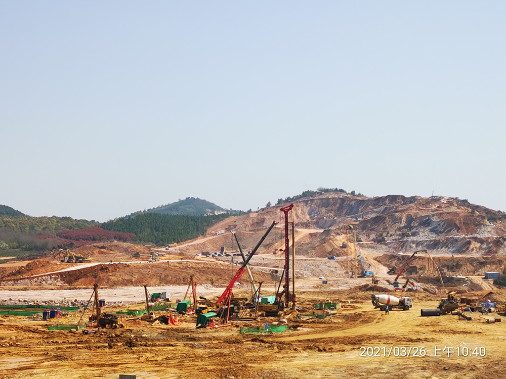 本工程工作內(nèi)容主要包括測(cè)量放線、鉆孔灌注樁旋挖成孔、鋼筋籠制作及安放、砼灌注、鉆渣外運(yùn)、強(qiáng)夯施工等。于2021年03月11日開(kāi)工,7月15日完工,歷時(shí)126天,滿足招標(biāo)方的節(jié)點(diǎn)工期和總工期要求。