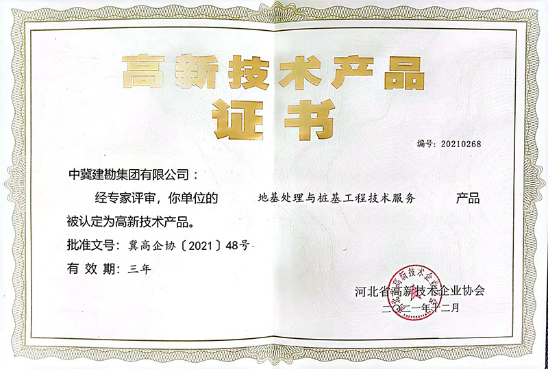 近日,河北省高新技術(shù)企業(yè)協(xié)會按照《河北省高新技術(shù)產(chǎn)品認(rèn)定實(shí)施細(xì)則》要求,經(jīng)組織專家評價、評審、認(rèn)定,我公司兩項(xiàng)技術(shù)“地基處理與樁基工程技術(shù)服務(wù)”和“巖土工程勘察設(shè)計(jì)技術(shù)服務(wù)”兩項(xiàng)技術(shù)服務(wù)榮獲“高新技術(shù)產(chǎn)品”稱號。本次榮獲“高新技術(shù)產(chǎn)品”稱號,標(biāo)志著擁有自主知識產(chǎn)權(quán)及核心技術(shù)的兩項(xiàng)服務(wù)產(chǎn)品得到了行業(yè)協(xié)會的認(rèn)可,進(jìn)一步提升了公司技術(shù)服務(wù)的品牌競效應(yīng)以及品牌的競爭力、影響力。同時“高新技術(shù)產(chǎn)品”是高新技術(shù)企業(yè)認(rèn)定的重要依據(jù)和加分項(xiàng),為公司2022年高新技術(shù)企業(yè)的期滿重新認(rèn)定打下了良好基礎(chǔ)。