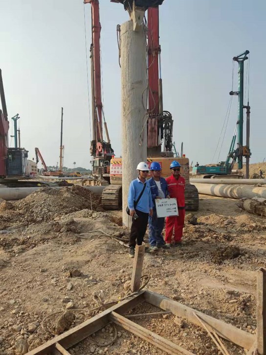 本工程自2021年01月18日開工,2021年09月24日完工。共完成旋挖灌注樁直徑(600mm)4776根、直徑(800mm)170根,混凝土等級C30、C35P8兩種等級,直徑600mm樁端入中風化板巖≥1.2m,直徑800mm樁端入中風化板巖≥1.6m。
