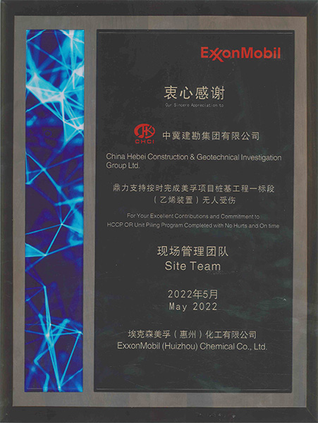 惠州美孚乙烯一期項目樁基工程榮獲“優(yōu)秀管理團隊”榮譽稱號
