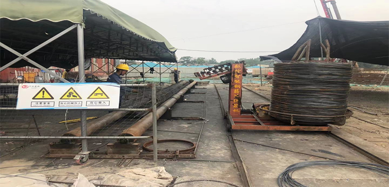 本工程自2021年2月21日開(kāi)工,2022年3月21日完工,總歷時(shí)375天。2021年5月進(jìn)入施工高峰期,使用旋挖鉆機(jī)9臺(tái),每日完成樁數(shù)約 70根。由于測(cè)放樁位的工作量大,采用全站儀測(cè)放效率較低,影響施工進(jìn)度,經(jīng)研究引進(jìn)了智能打樁系統(tǒng)。在引進(jìn)智能打樁系統(tǒng)后,先與全站儀測(cè)放的樁位進(jìn)行對(duì)比測(cè)試,對(duì)其測(cè)放樁位的精度和效率進(jìn)行了驗(yàn)證,滿(mǎn)足精度要求,并在項(xiàng)目實(shí)施過(guò)程中及時(shí)總結(jié)使用經(jīng)驗(yàn),為進(jìn)一步推廣智能化打樁系統(tǒng)的應(yīng)用打好基礎(chǔ)。本工程在鋼筋籠制作方面,采用了3臺(tái)滾籠機(jī)進(jìn)行箍筋纏繞工作,提高了工作效率并減少了人員投入,保證了施工進(jìn)度需要。