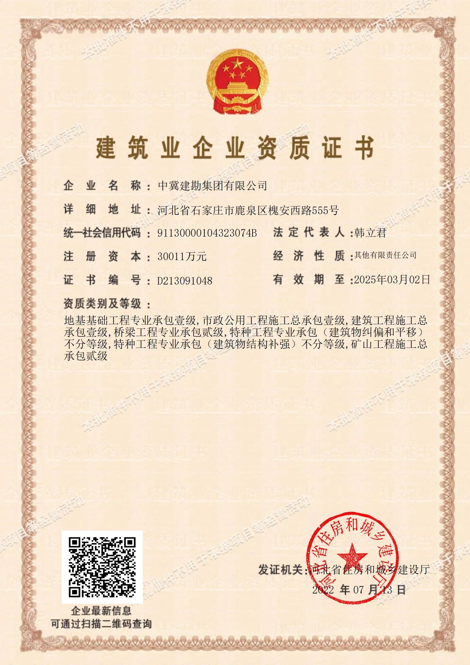 在集團公司領導的運籌帷幄下,經過近半年的不懈努力,集團公司于2022年7月13日喜獲建筑工程施工總承包壹級資質,該資質的取得將有力促進我公司建筑施工總承包業(yè)務開展,對公司轉型升級、地方市場開拓將起到重要作用,為公司持續(xù)穩(wěn)定發(fā)展奠定更加堅實的基礎。