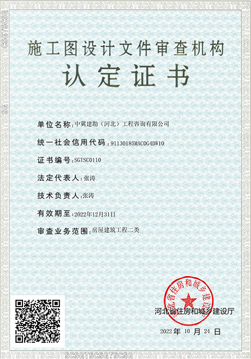 我公司全資控股子公司——中冀建勘(河北)工程咨詢(xún)有限公司,于2022年10月24日取得施工圖設(shè)計(jì)文件審查機(jī)構(gòu)認(rèn)定證書(shū),可承接二級(jí)及以下房屋建筑工程的施工圖審查業(yè)務(wù)。隨著施工圖設(shè)計(jì)文件審查機(jī)構(gòu)認(rèn)定證書(shū)的取得,為我們進(jìn)一步積極開(kāi)展市場(chǎng)經(jīng)營(yíng)工作,努力將施工圖審查業(yè)務(wù)打造成為新的經(jīng)營(yíng)創(chuàng)收增長(zhǎng)點(diǎn),提供了新的契機(jī)和基礎(chǔ)。
