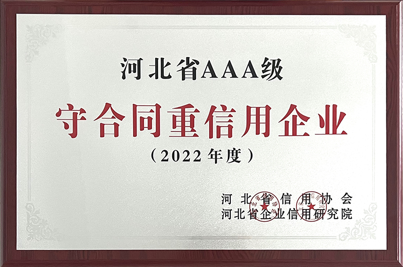 根據(jù)河北省信用辦、河北省信用協(xié)會(huì)等七部門印發(fā)的《關(guān)于開展“推進(jìn)誠信建設(shè)共建信用河北”的活動(dòng)方案》的通知,以及河北省信用協(xié)會(huì)、河北省企業(yè)信用研究院印發(fā)的《關(guān)于2022年度“河北省守合同重信用”企業(yè)申報(bào)認(rèn)定工作的通知》,我公司被評(píng)為“河北省AAA級(jí)守合同重信用企業(yè)”。