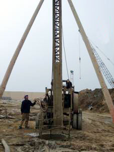 針對(duì)上述要求,工程現(xiàn)場采取以下針對(duì)措施:①由于花崗巖強(qiáng)度較高,沖擊鉆成孔速度慢,可能對(duì)成樁質(zhì)量產(chǎn)生影響。因此結(jié)合以往工程經(jīng)驗(yàn),根據(jù)本工程地層特點(diǎn),制定了比較切合實(shí)際的施工操作參數(shù),提高了成孔施工速度,確保單樁成樁總體時(shí)間符合設(shè)計(jì)要求。②現(xiàn)場加工了兩套清孔裝置,有效地提高清孔速度和質(zhì)量,保證了沉渣厚度滿足設(shè)計(jì)要求的不大于5cm。③在沖擊鉆頭焊上取樣器,解決了地層鑒定需要樣品的問題。