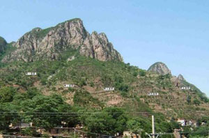 磁縣陶泉鄉(xiāng)南王莊位于冀西南群山之中。近年來,北側“道士帽”山峰下曾發(fā)生過巖石崩落,造成一處民宅被砸,威脅約20余戶居民。隨著時間的推移,在各種地質(zhì)作用下,尤其是降水、凍融的影響,存在著繼續(xù)發(fā)生崩塌的隱患。為了村民的生命、財產(chǎn)安全,達到防災減災的目的,受磁縣國土資源局的委托,我公司進行了崩塌治理勘察工作。