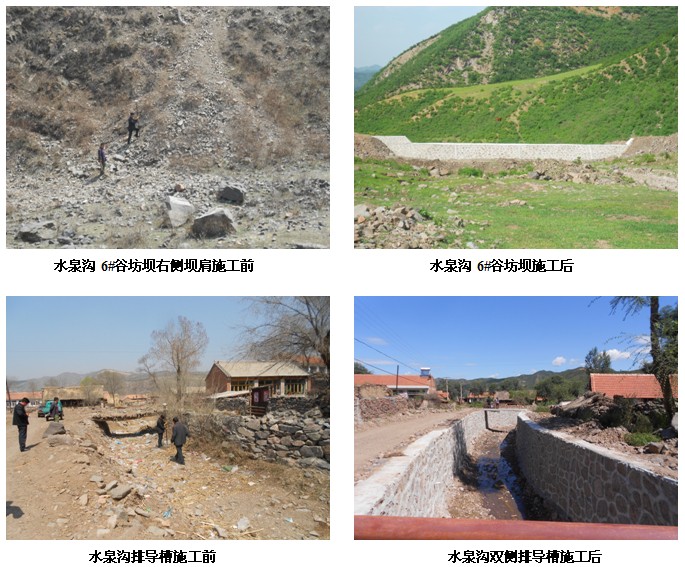 本治理工程施工時間為2013年5月8日-2013年9月10日,包括水泉村范圍內(nèi)水泉溝、王小溝兩條溝谷,主要施工項(xiàng)目為谷坊壩、排導(dǎo)槽、擋墻工程,其中水泉溝內(nèi)包括6道谷坊壩,PM2坡面護(hù)腳擋墻,水泉溝單側(cè)排導(dǎo)槽(0~249.3m),水泉溝雙側(cè)排導(dǎo)槽(0~708.6m),王小溝內(nèi)包括道谷坊壩7道,王小溝單側(cè)排導(dǎo)槽(0~271.2m),王小溝雙側(cè)排導(dǎo)槽(0~372m)。